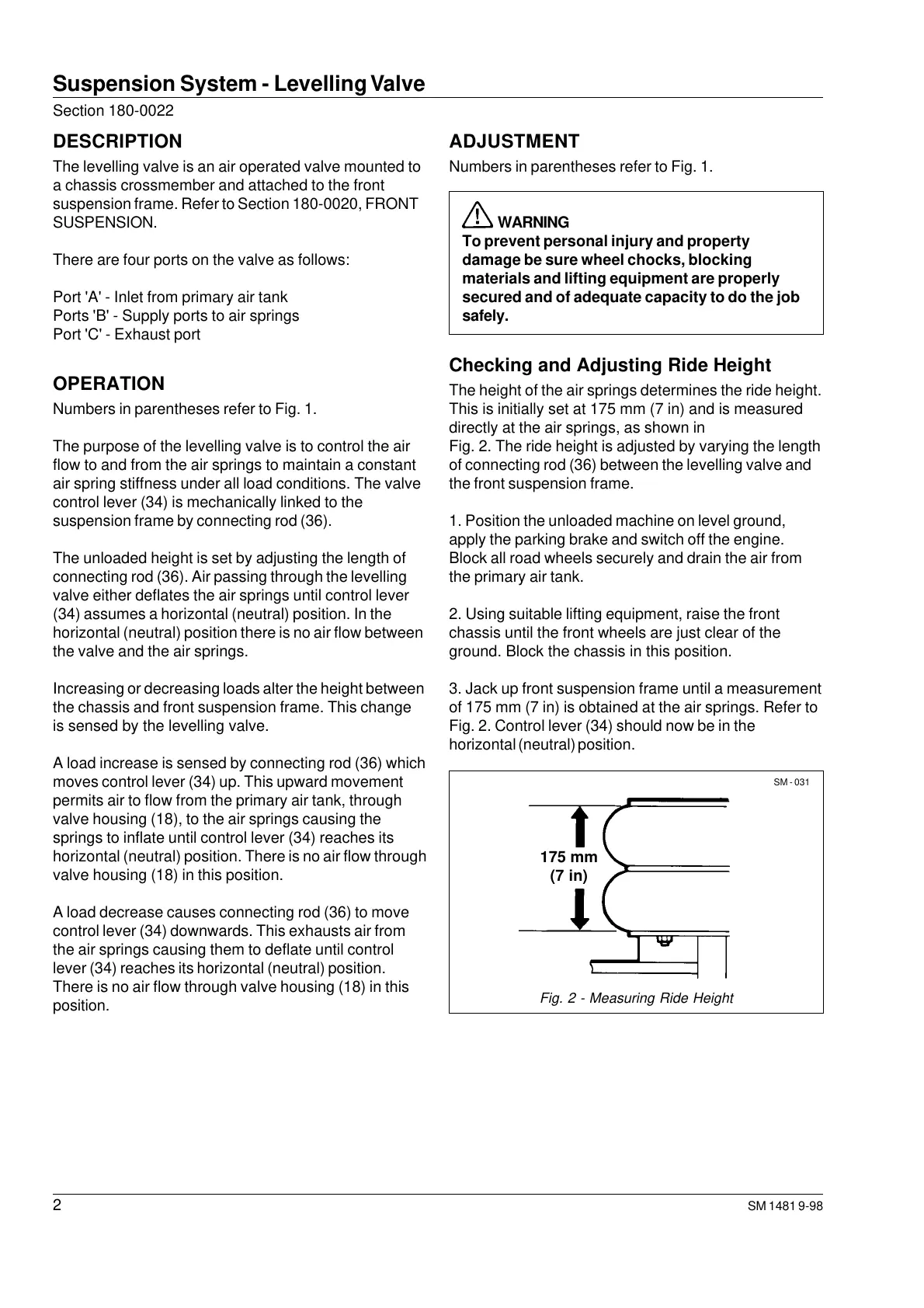 of 175 mm (7 in) is obtained at the air springs. Refer to