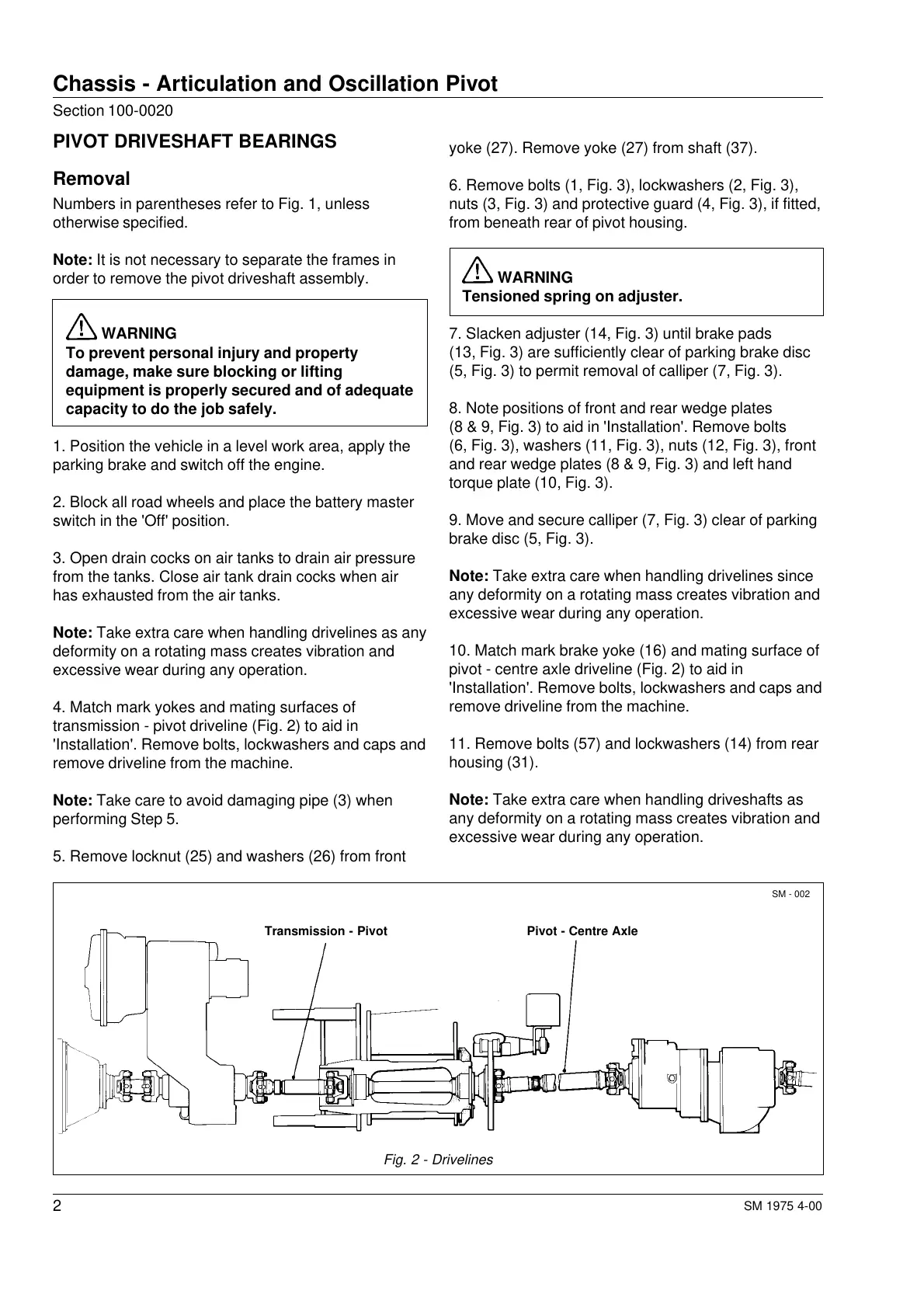 pivot - centre axle driveline (Fig. 2) to aid in