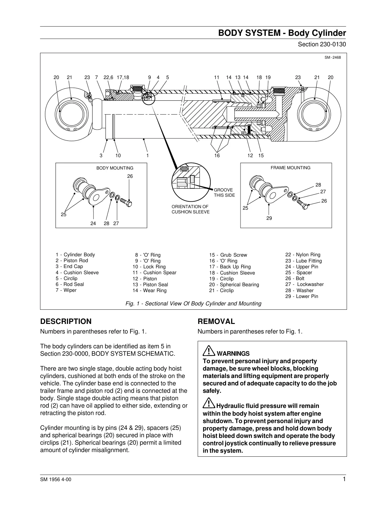 Fig. 1 - Sectional View Of Body Cylinder and Mounting