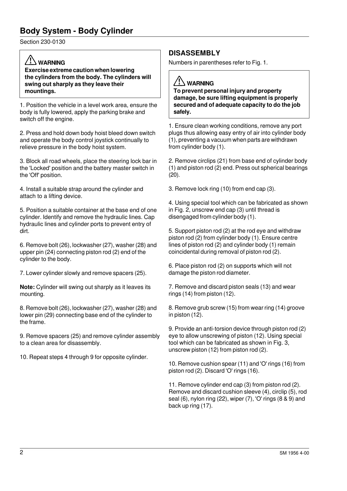 7. Lower cylinder slowly and remove spacers (25).