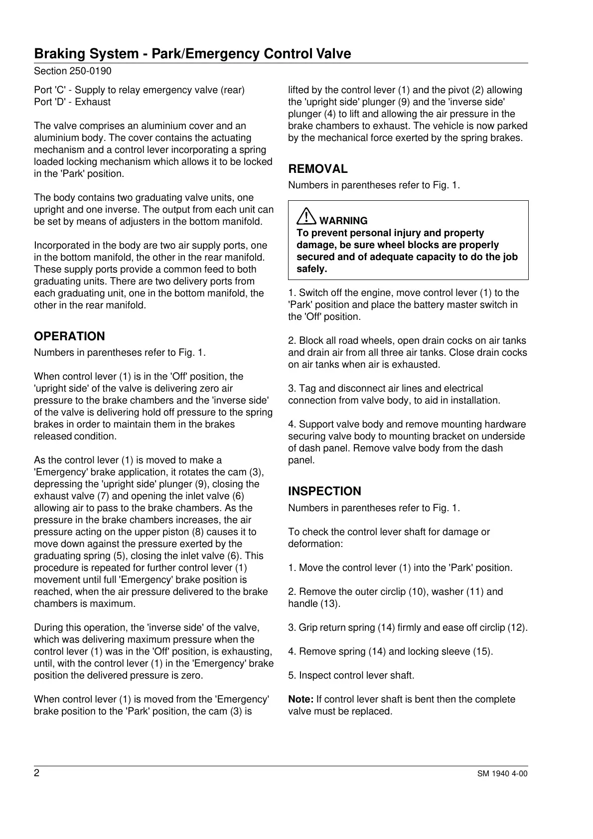 Braking System - Park/Emergency Control Valve