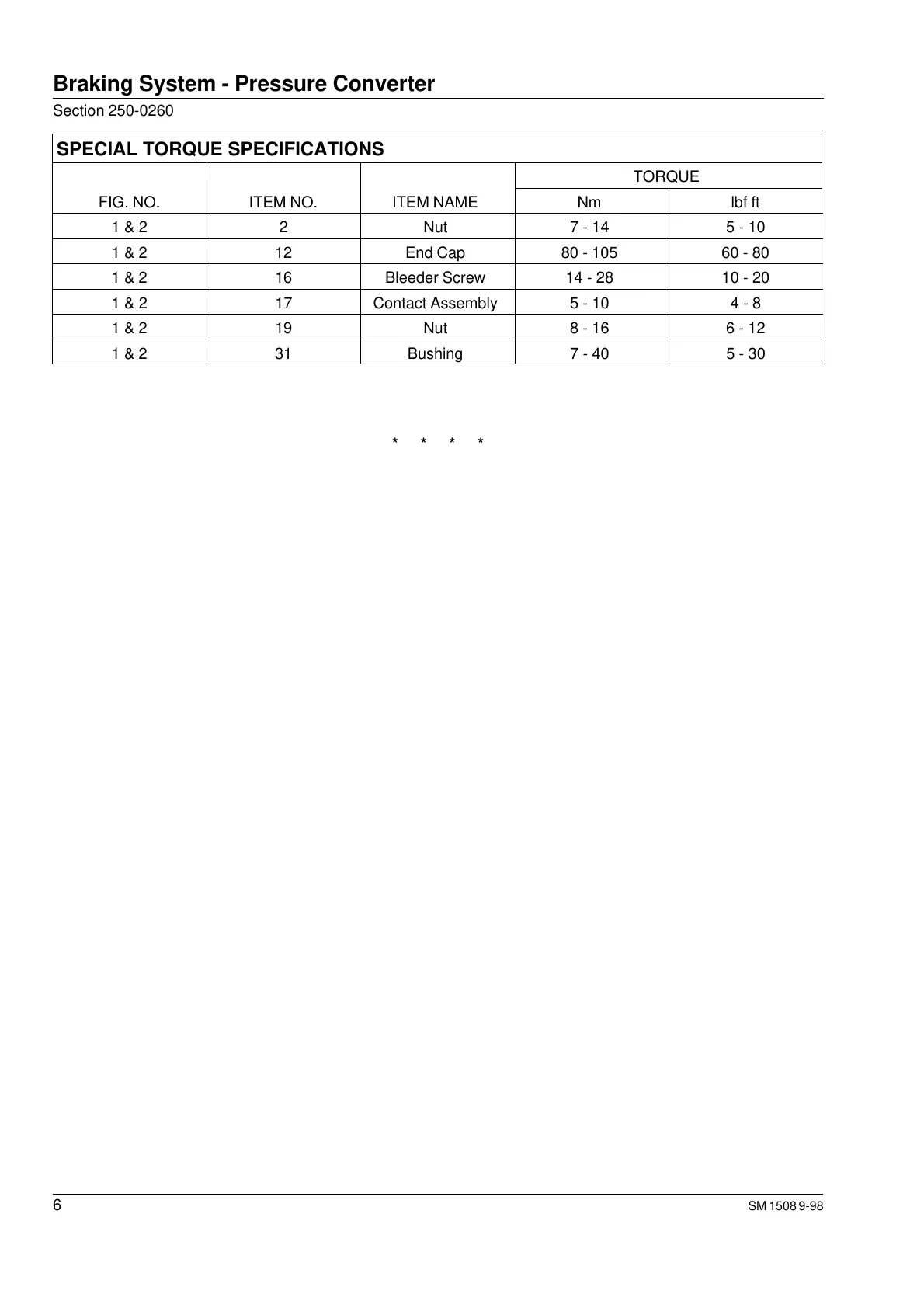 FIG. NO. ITEM NO. ITEM NAME Nm lbf ft