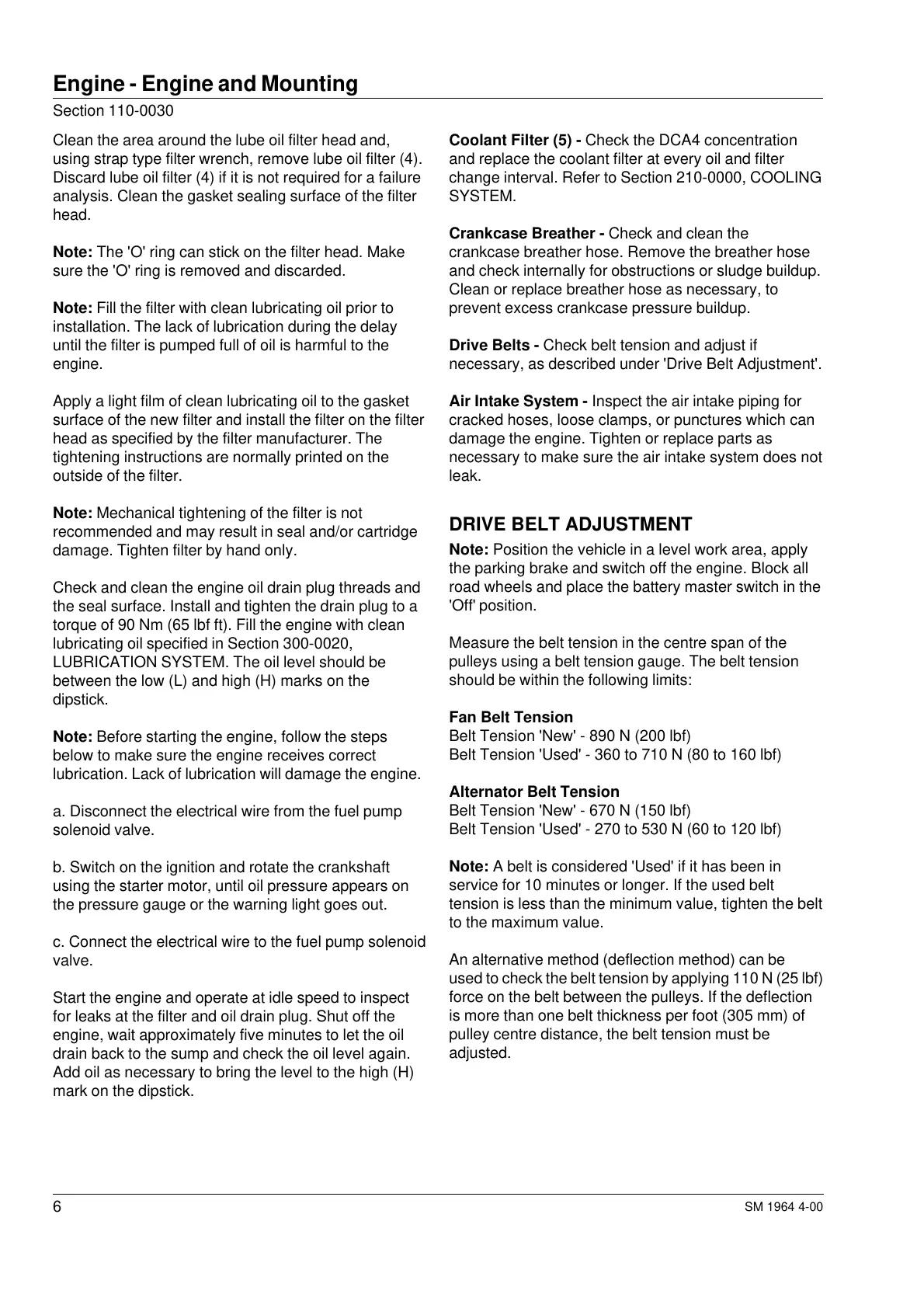 Belt Tension 'Used' - 360 to 710 N (80 to 160 lbf)