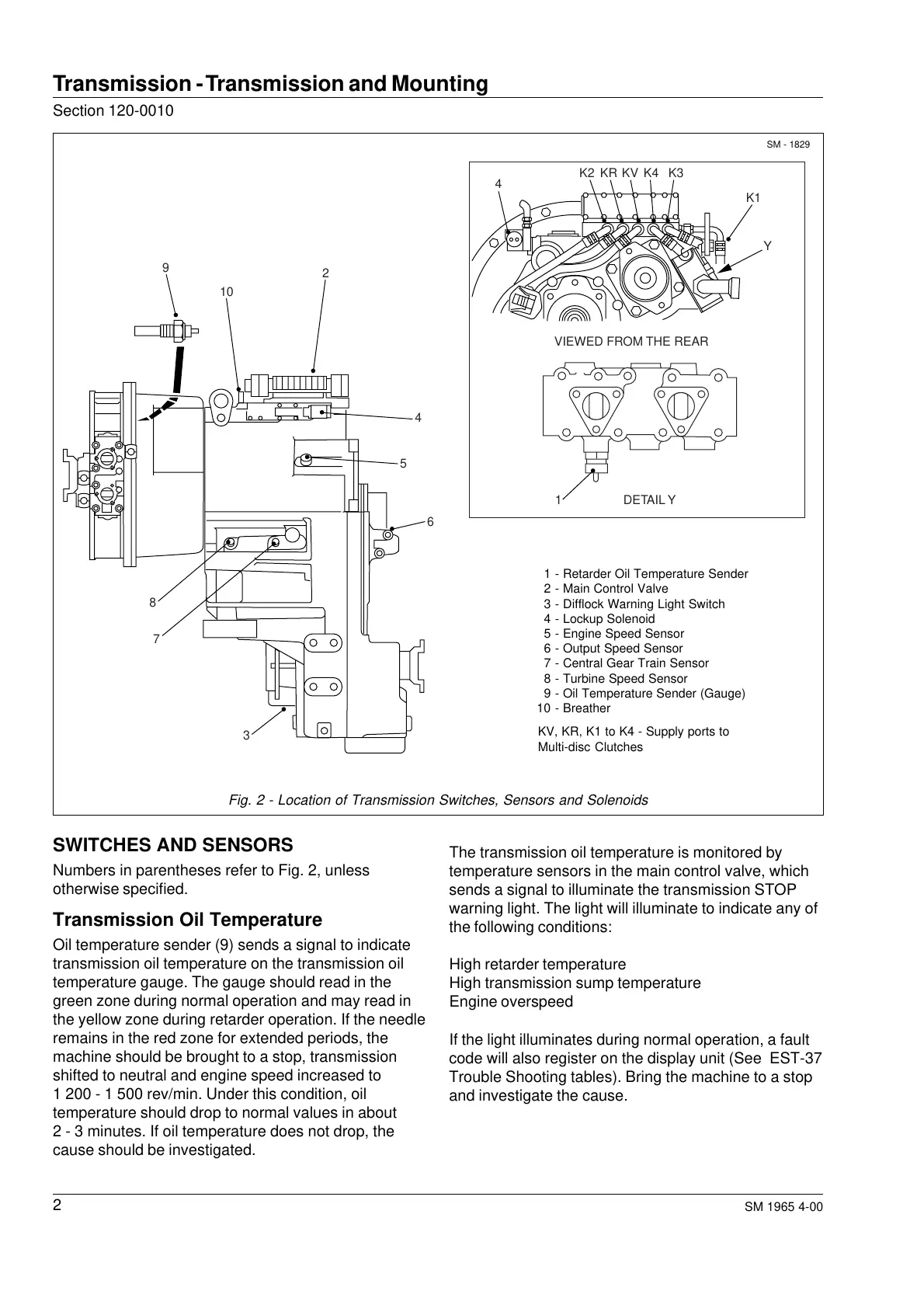 Fig. 2 - Location of Transmission Switches, Sensors and Solenoids