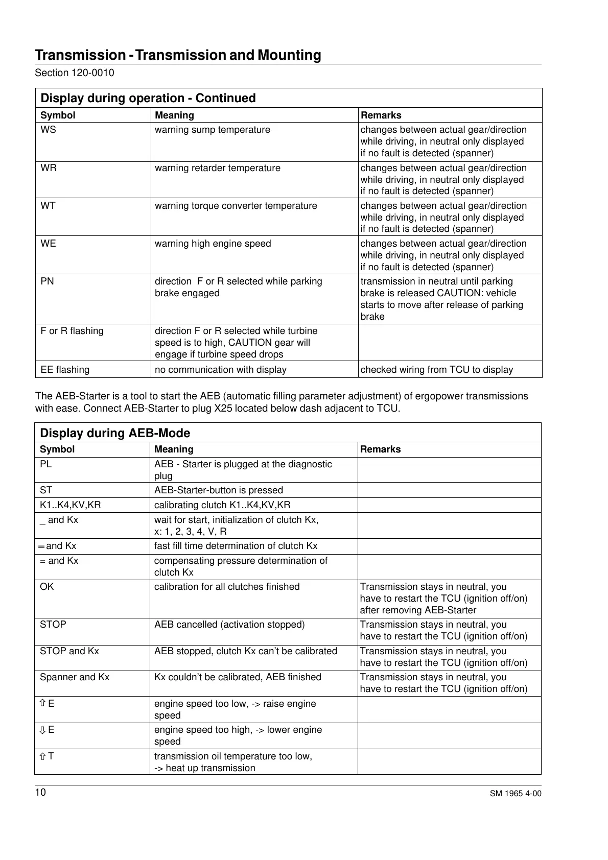 STOP and Kx AEB stopped, clutch Kx can’t be calibrated Transmission stays in neutral, you