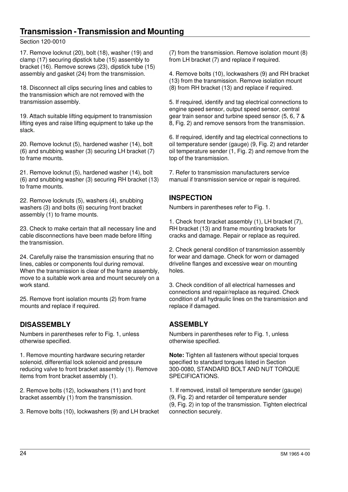 8, Fig. 2) and remove sensors from the transmission.