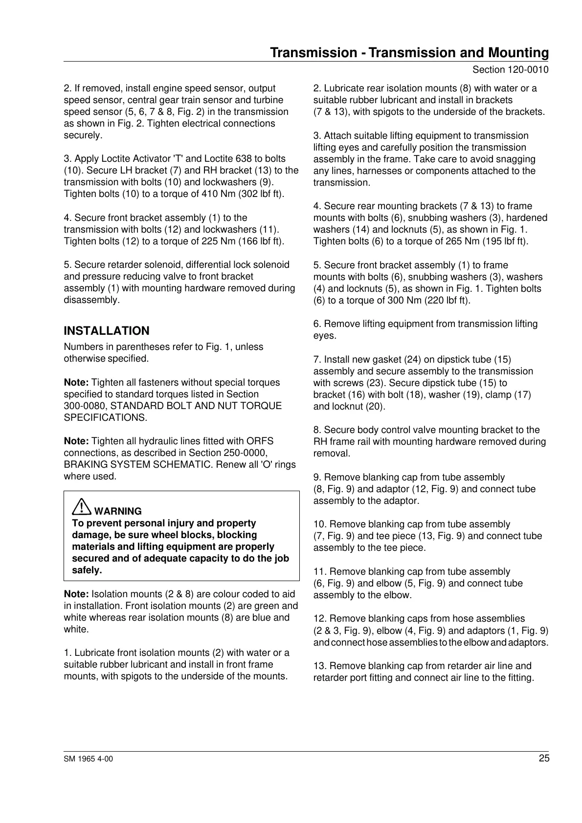 specified to standard torques listed in Section