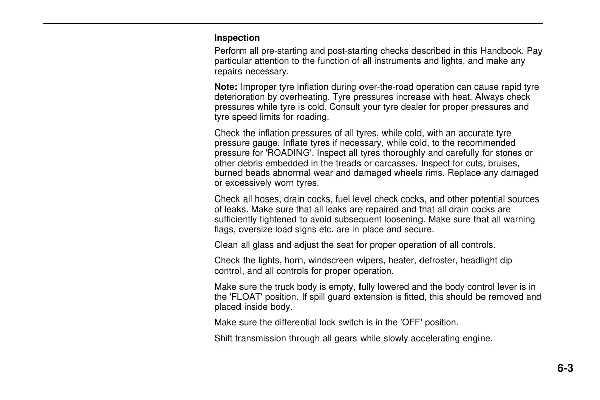 pressure for 'ROADING'. Inspect all tyres thoroughly and carefully for stones or