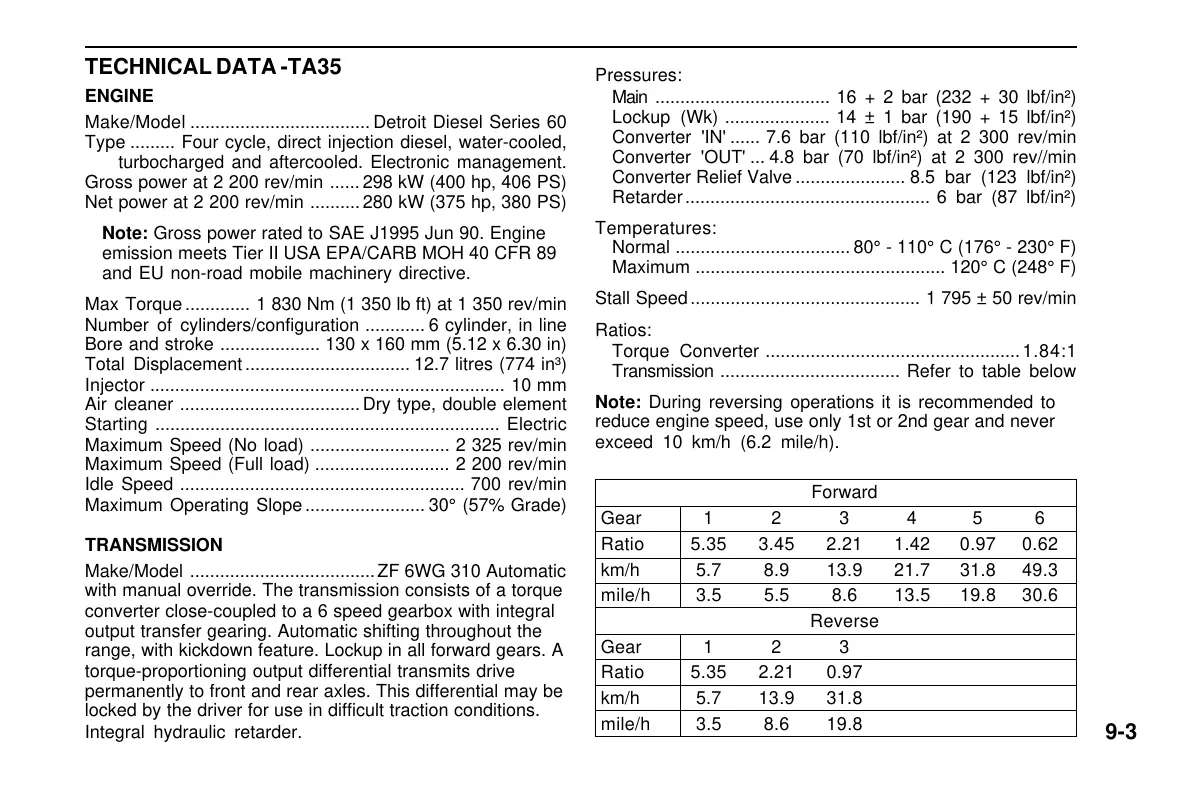 Max Torque............. 1 830 Nm (1 350 lb ft) at 1 350 rev/min