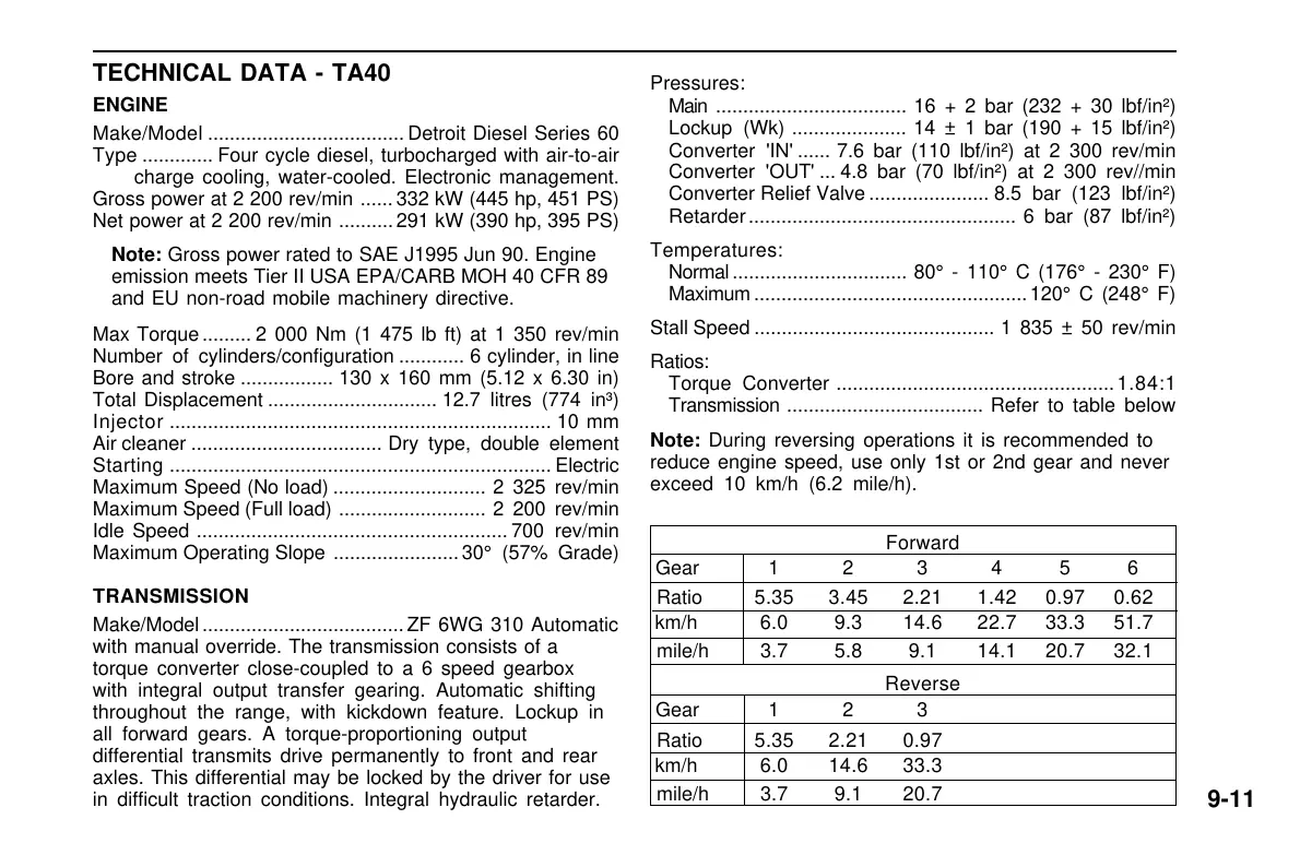 Max Torque......... 2 000 Nm (1 475 lb ft) at 1 350 rev/min