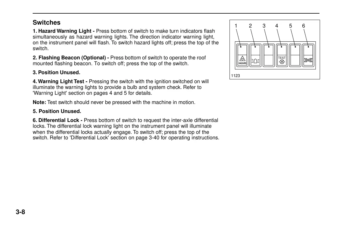 switch. Refer to 'Differential Lock' section on page 3-40 for operating instructions.