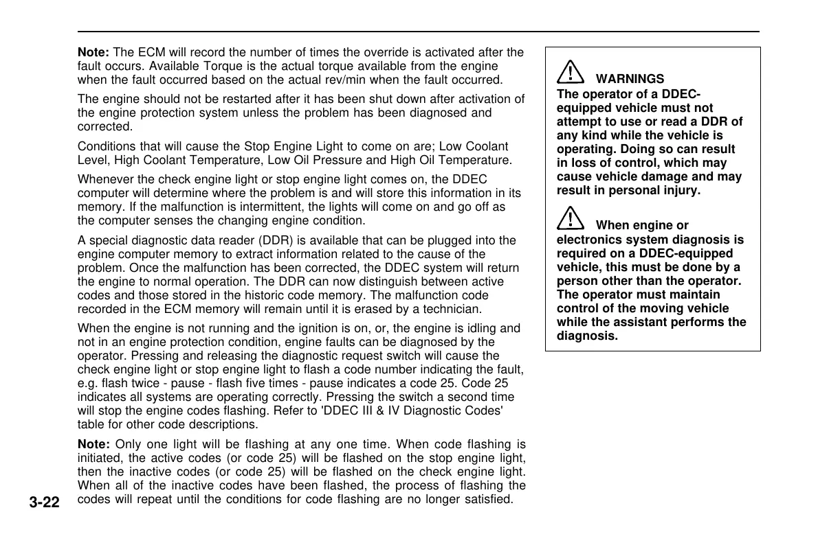 will stop the engine codes flashing. Refer to 'DDEC III & IV Diagnostic Codes'