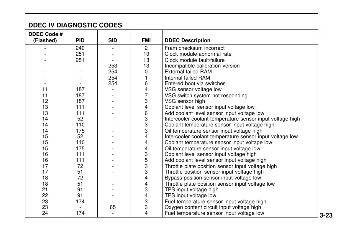 DDEC IV DIAGNOSTIC CODES