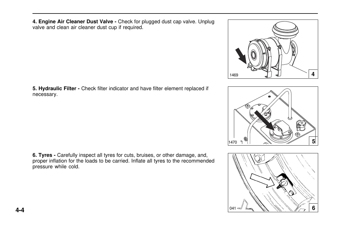 4. Engine Air Cleaner Dust Valve - Check for plugged dust cap valve. Unplug