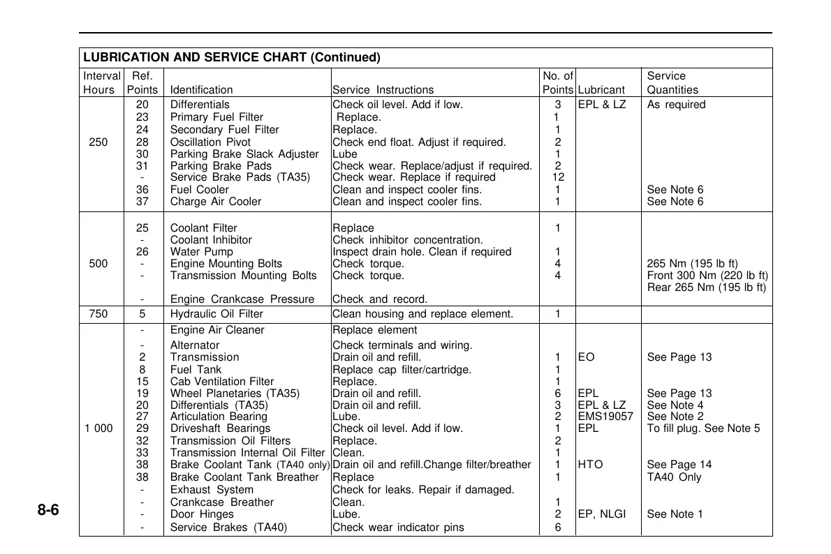 20 Differentials (TA35) Drain oil and refill. 3 EPL & LZ See Note 4
