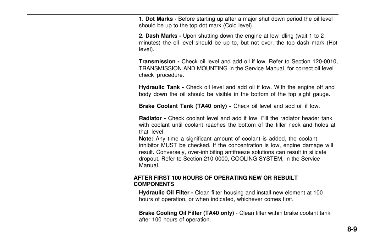 1. Dot Marks - Before starting up after a major shut down period the oil level