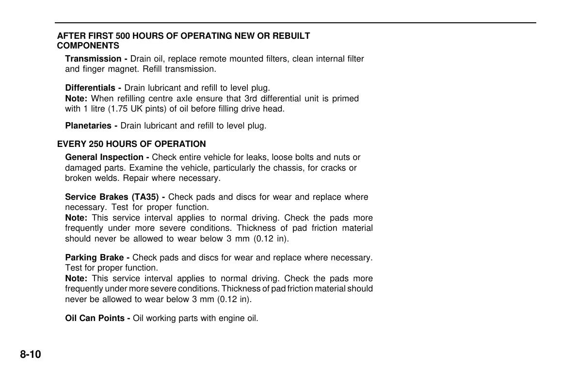 AFTER FIRST 500 HOURS OF OPERATING NEW OR REBUILT