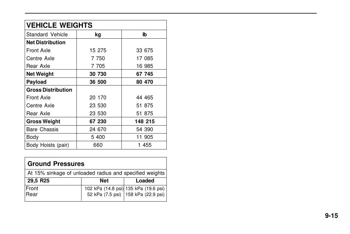 Rear 52 kPa (7.5 psi) 158 kPa (22.9 psi)