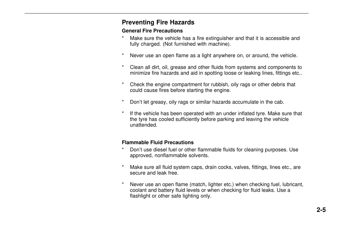 * Don’t let greasy, oily rags or similar hazards accumulate in the cab.