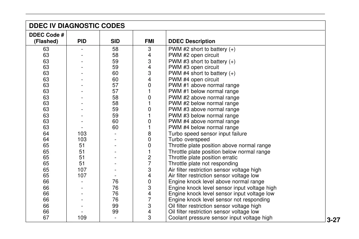 DDEC IV DIAGNOSTIC CODES