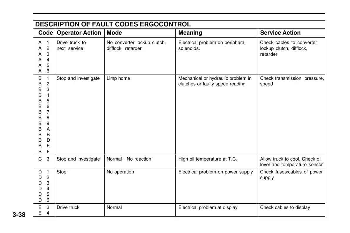 DESCRIPTION OF FAULT CODES ERGOCONTROL