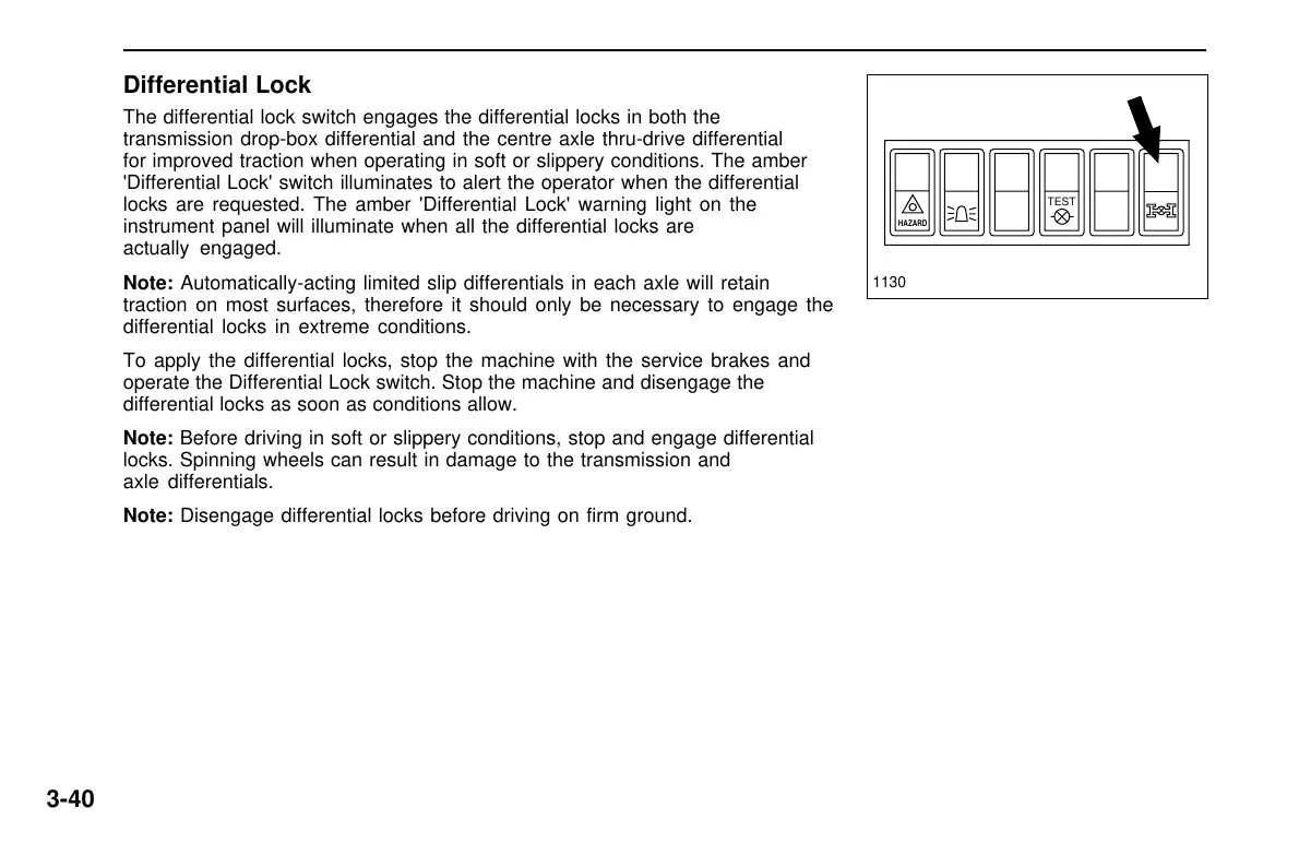'Differential Lock' switch illuminates to alert the operator when the differential