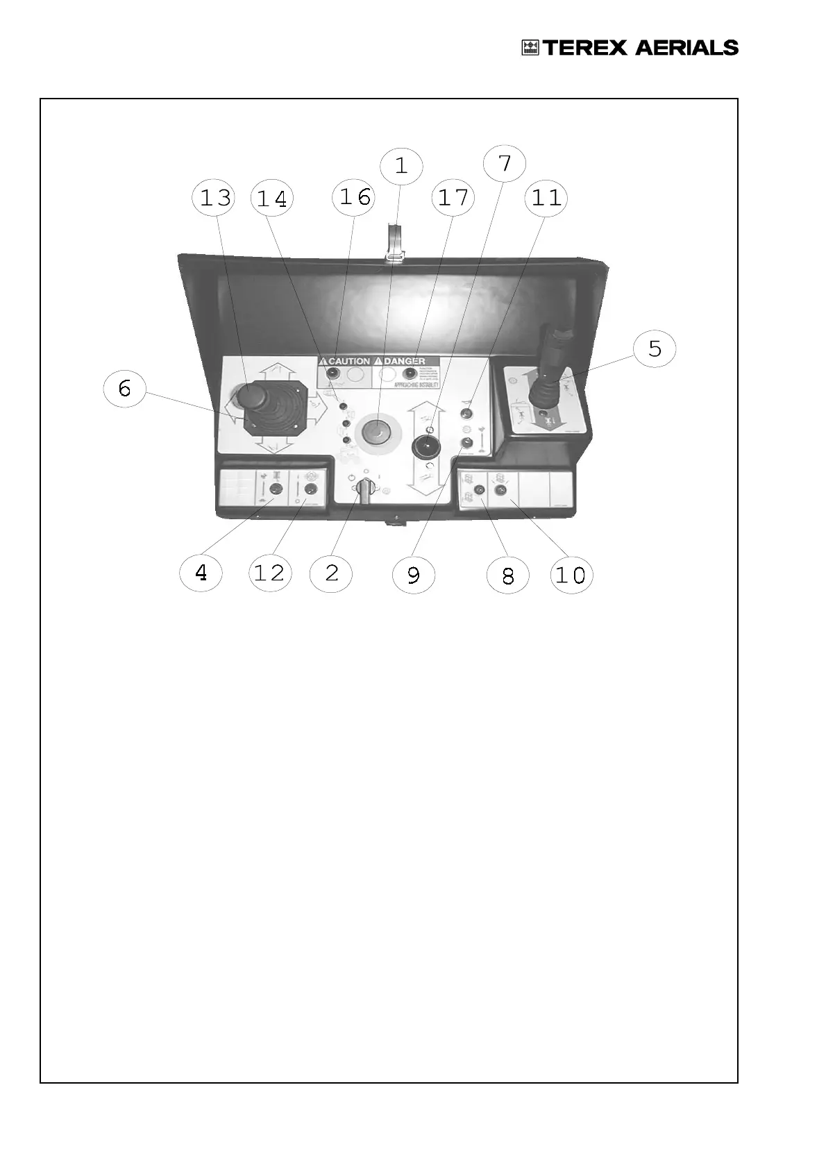5) Drive/Steer Joystick 14) Boom Selection Indicator LED