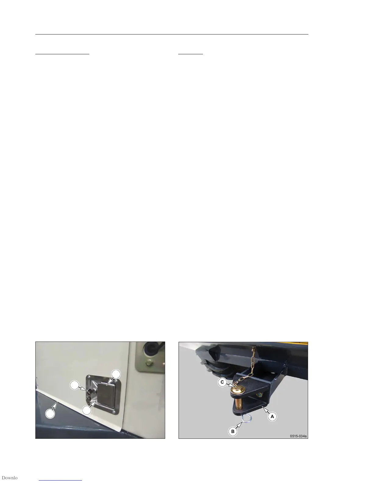 • The grip clip (B) must be positioned through the towing pin