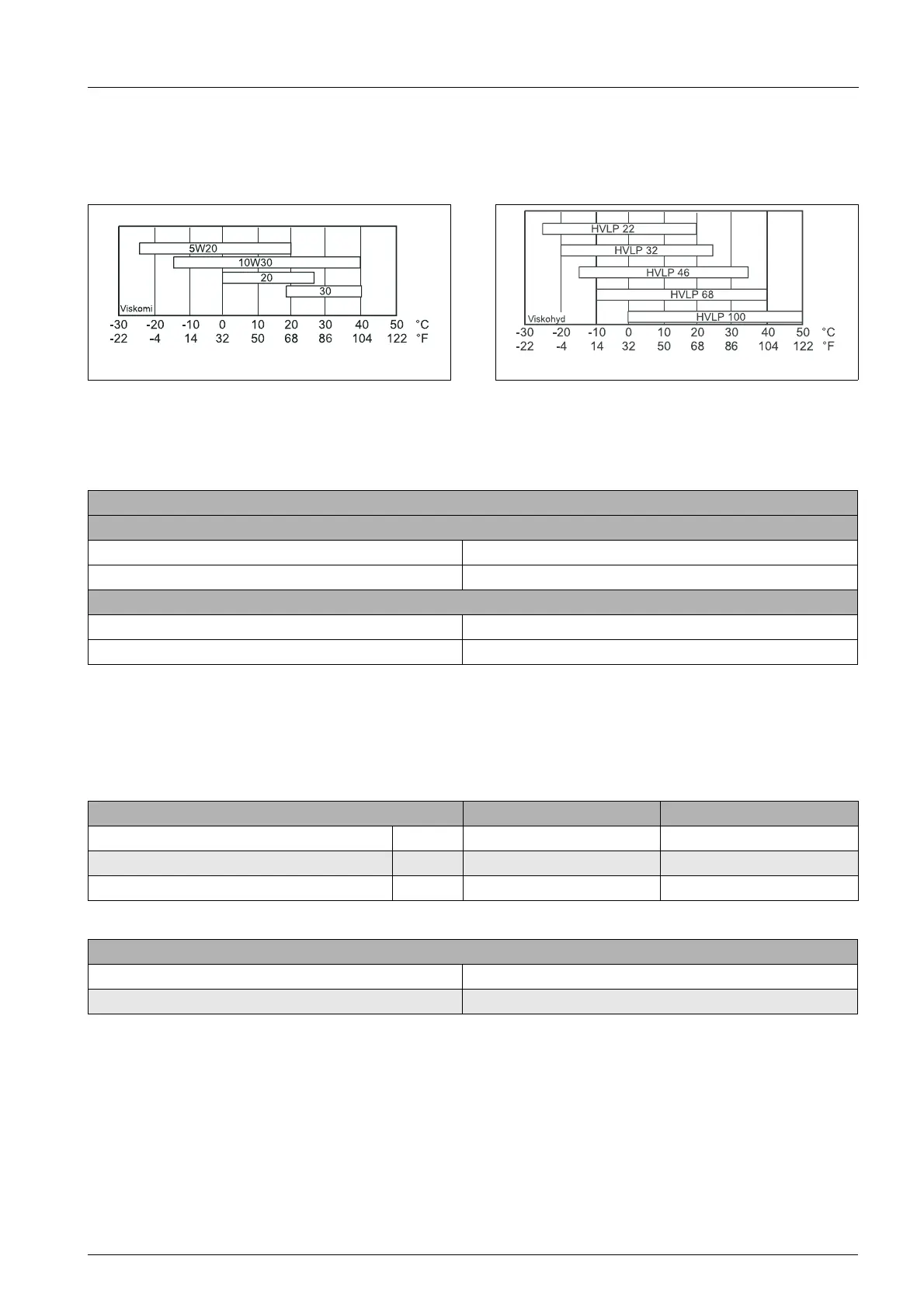 Fig. 9 Recommended viscosity classes for engine oil Fig. 10 Recommended viscosity classes for hydraulic oil