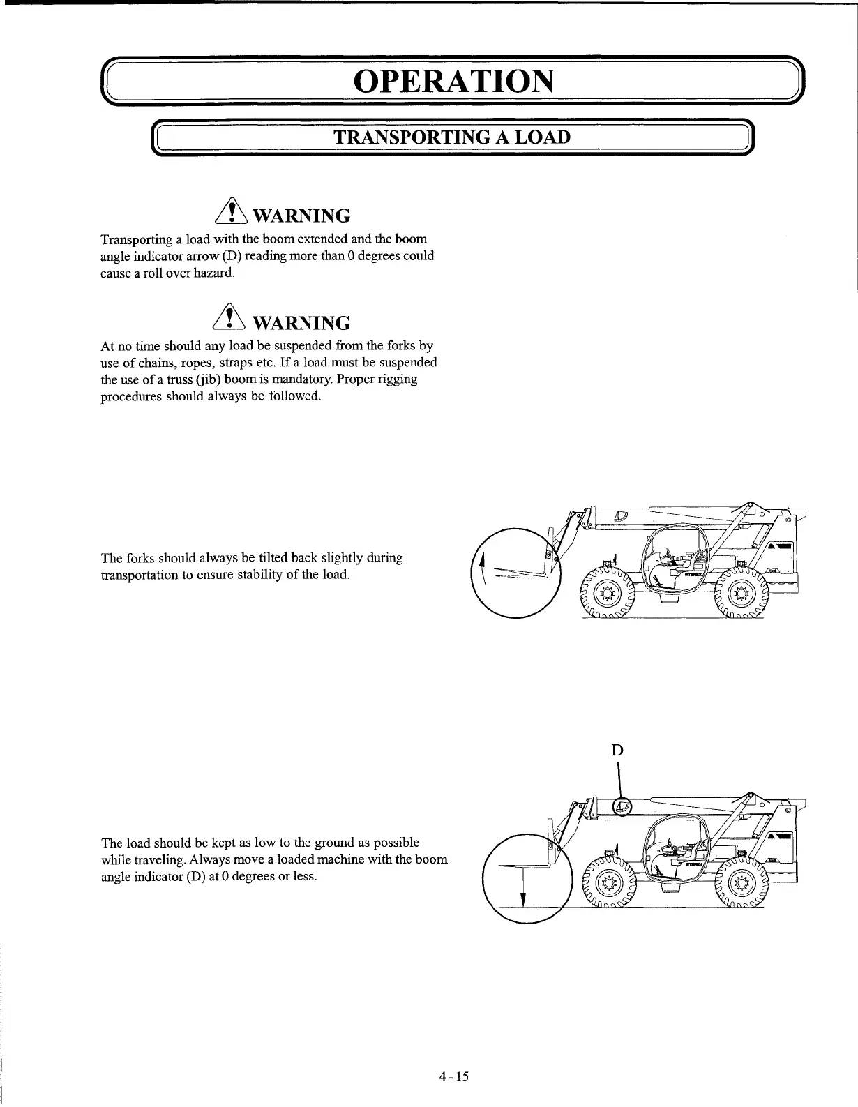 The forks should always be tilted back slightly during