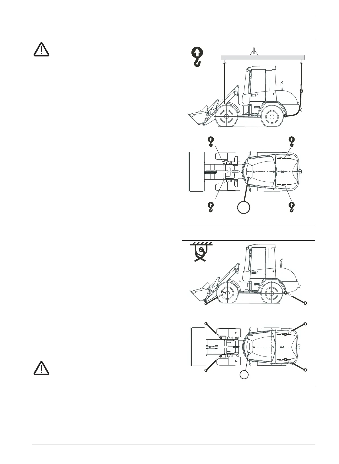 • Attach the loader to the hoisting appliance at the