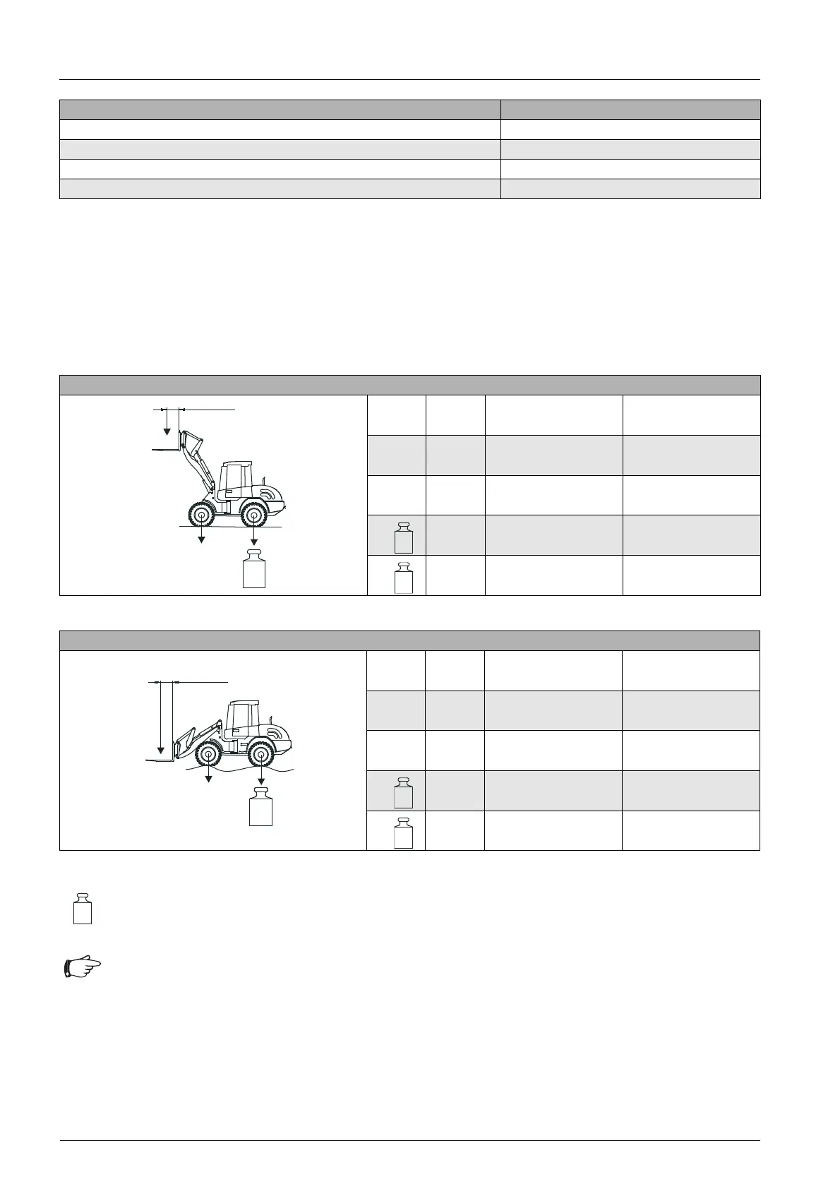 Tab. 19 Total lift range of fork attachment