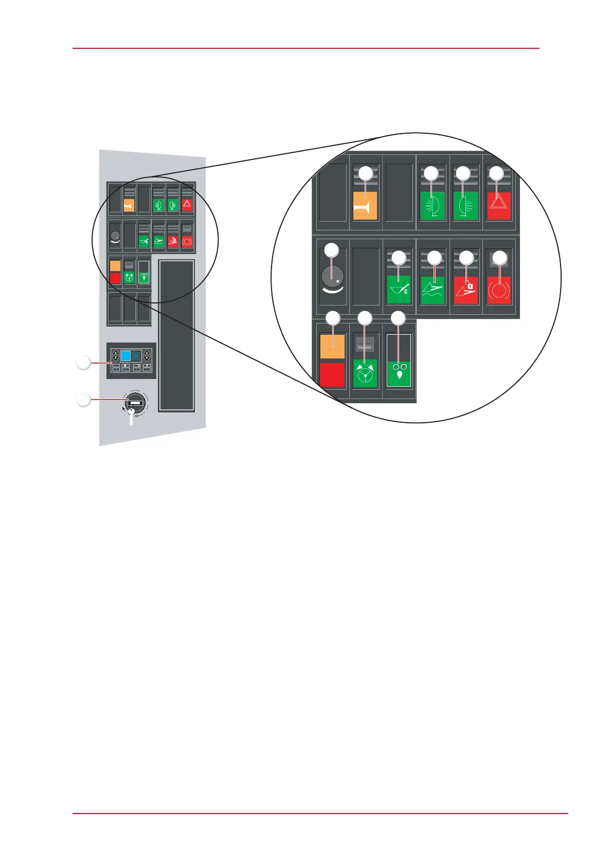 9 Parking brake preselection switch ON/OFF, ON = locked