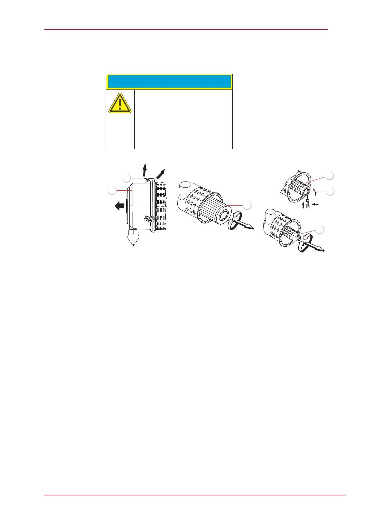 Grasp the safety cartridge (3) by the two clips (6) and withdraw by moving