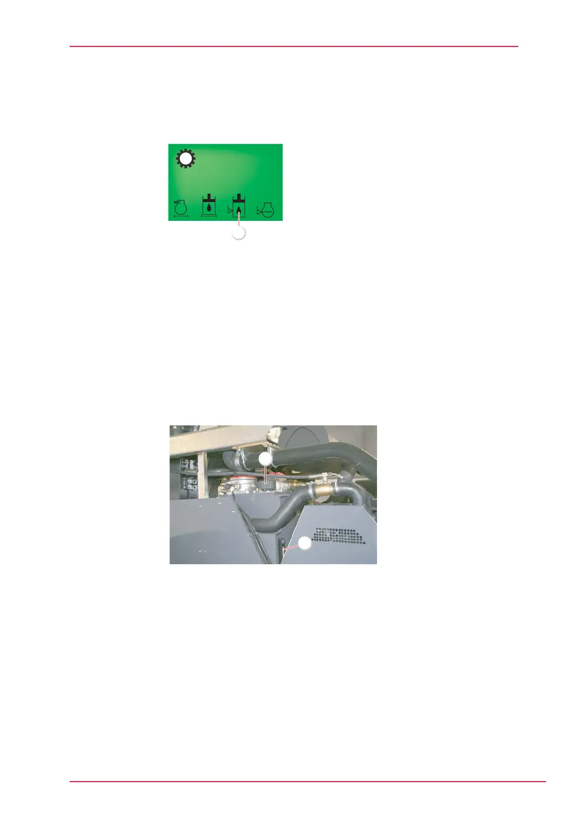 The oil level should be in the top third of the sight glass (1).