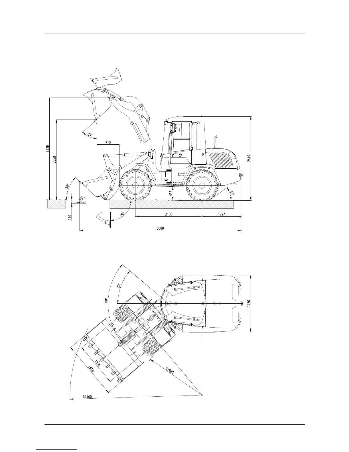 Fig. 6 Dimensioned drawing - standard bucket and Z kinematics