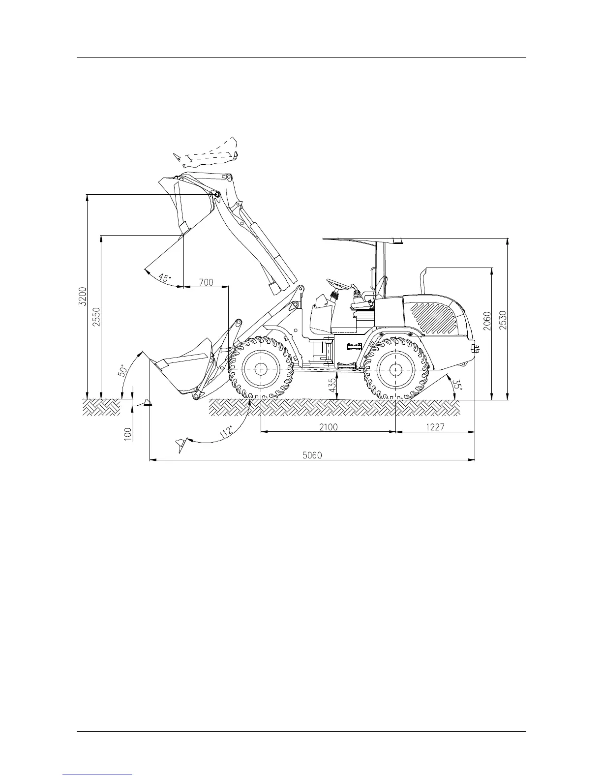 Fig. 9 Dimensioned drawing - low profile canopy with standard bucket 0.8 m³