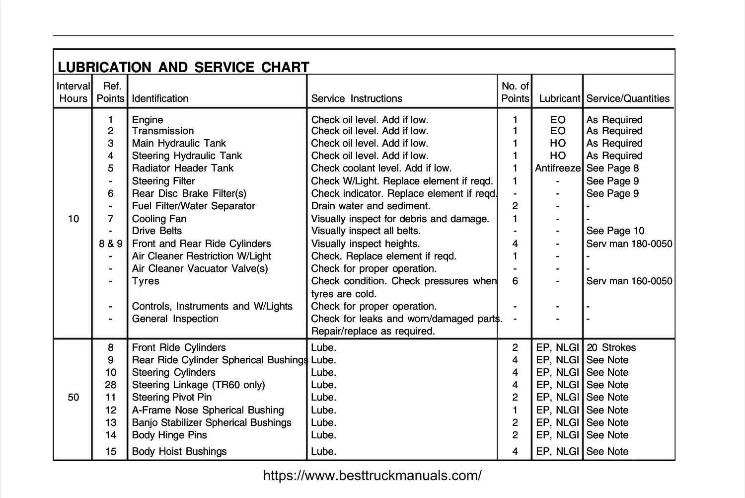HHoouurrss PPooiinnttss IIddeennttiiffiiccaattiioonn SSeerrvviicce e IInnssttrruuccttiioonnss PPooiinntts s LLuubbrriiccaanntt SSeerrvviiccee//QQuuaannttiittiieess