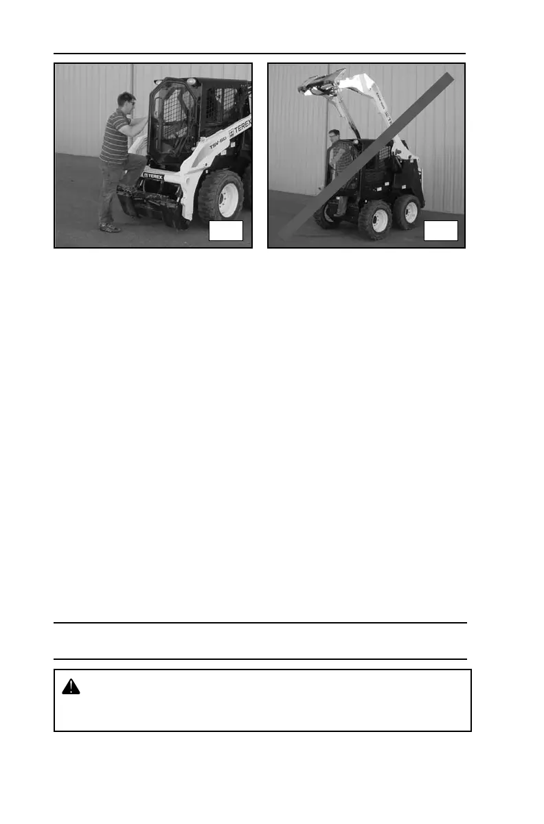 1. Enter machine with lift arms all the way down. Maintain three points of