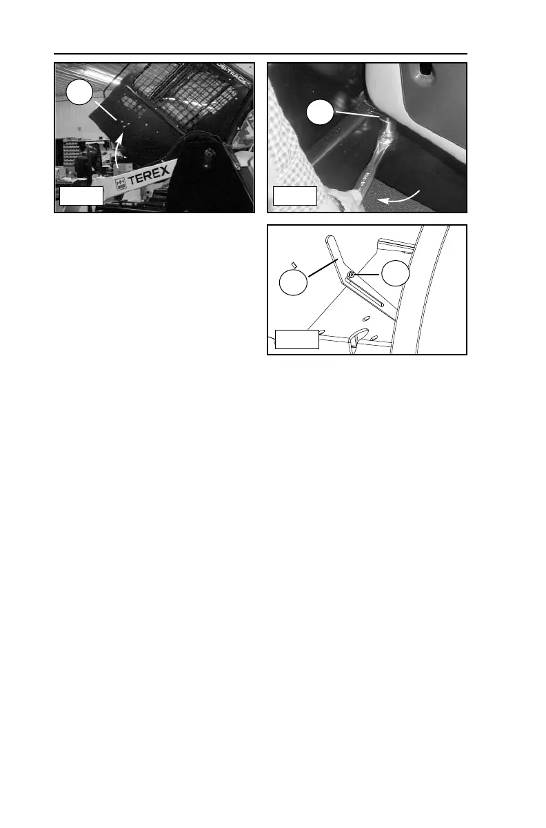1. Raise the cab brace so that the locking channel is clear of the shoulder bolt.