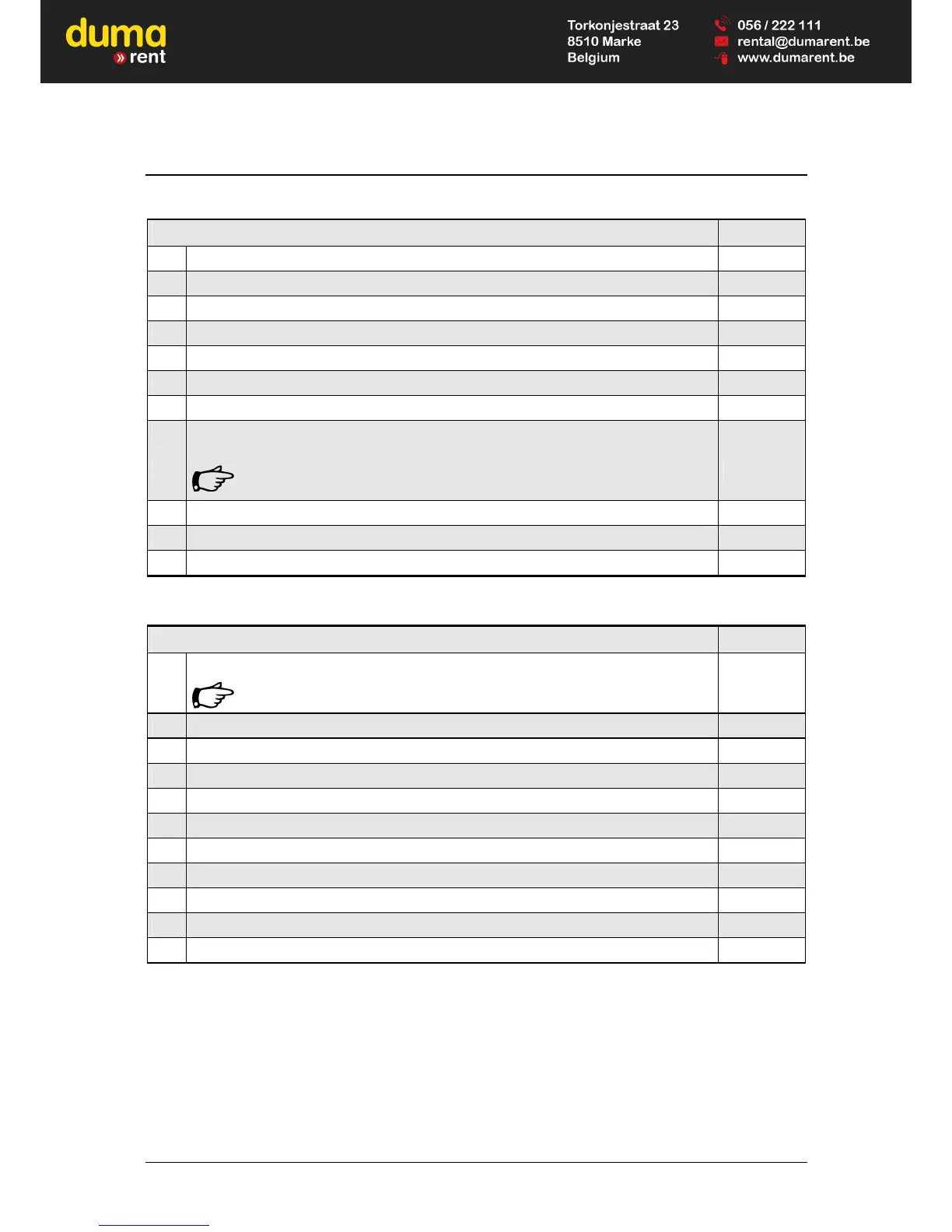 25 Lubricate the machine according to overview of lubricating points 7.8.3