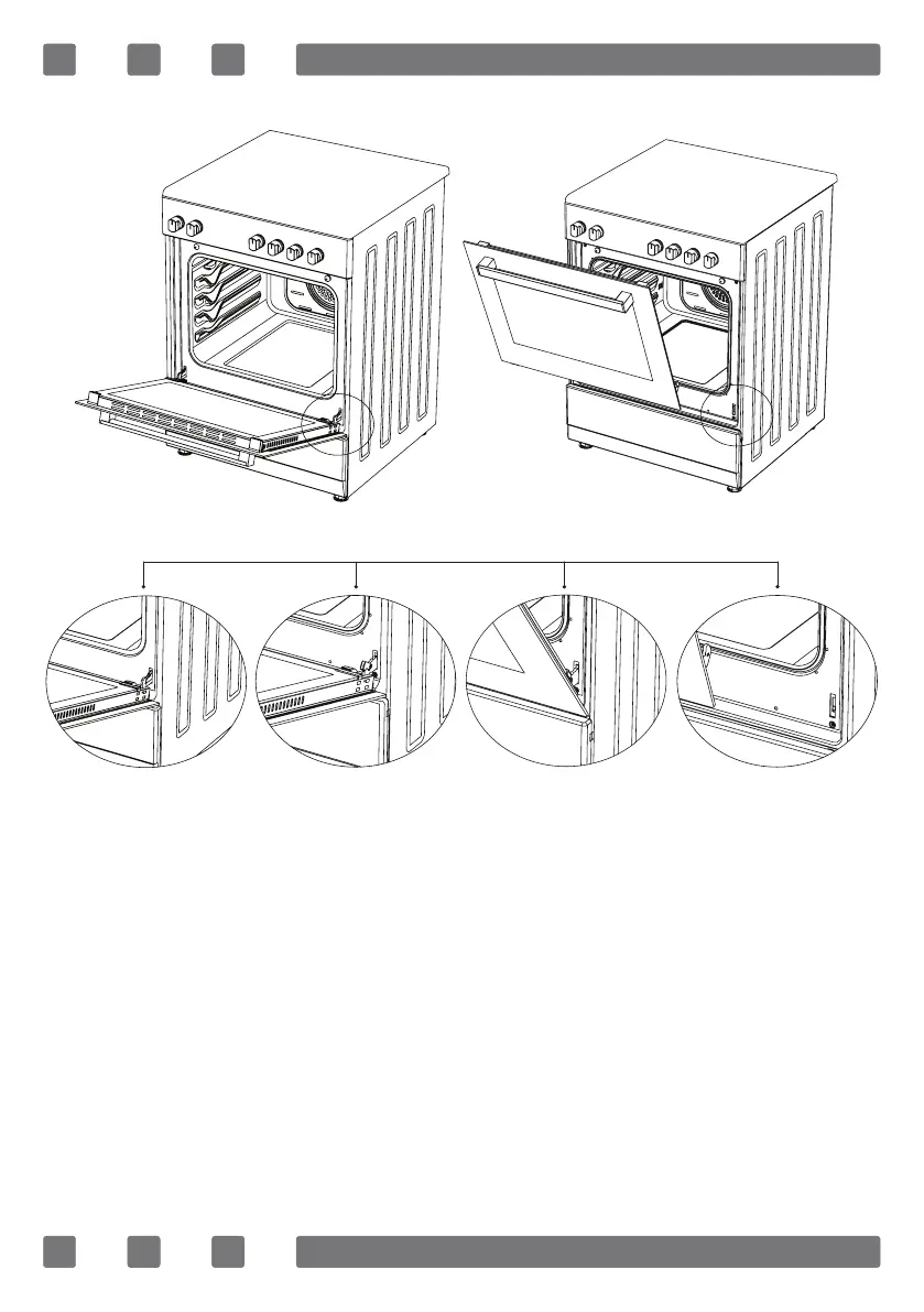 In order to re-place the oven door, perform the abovementioned steps in reverse.