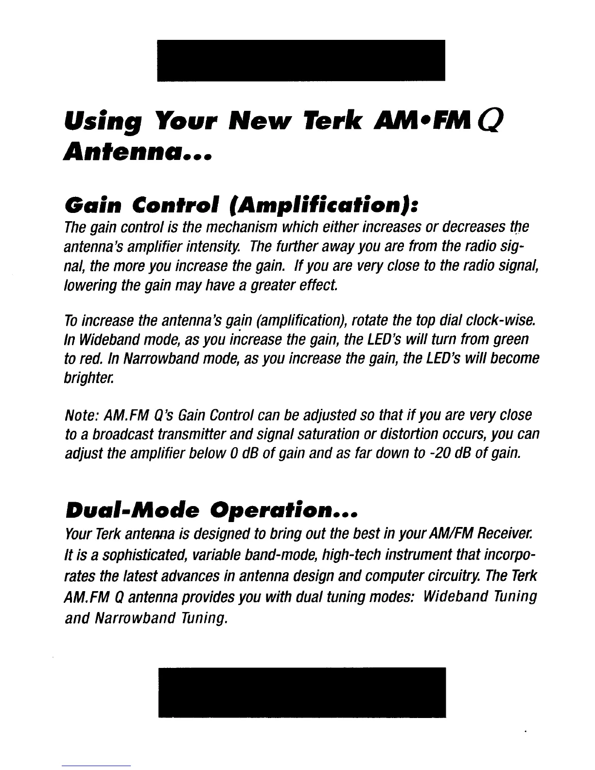 TERK Technologies AF-1 - Using Your New Terk AM-FM Q Antenna; Gain Control (Amplification); Dual-Mode Operation