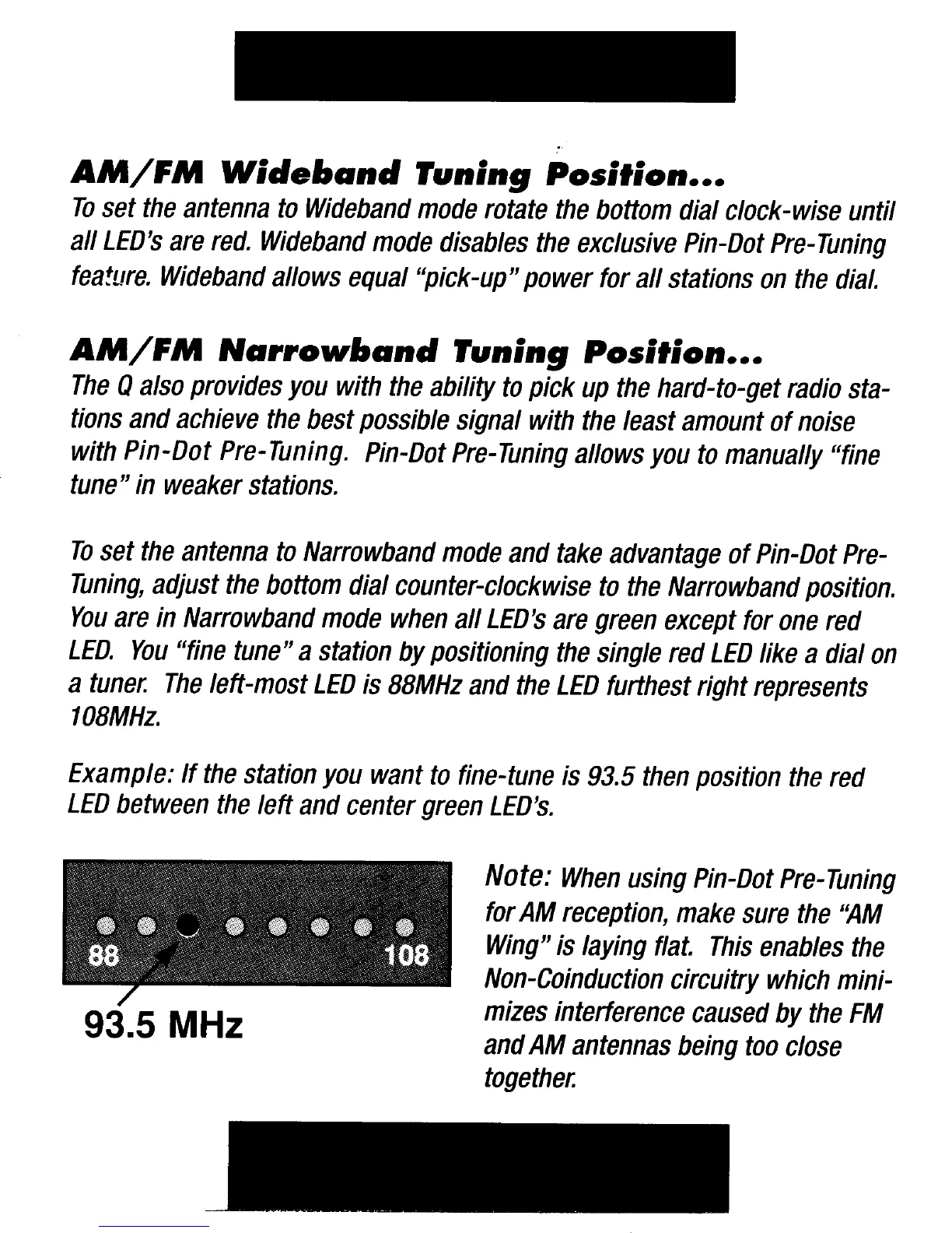 TERK Technologies AF-1 - AM;FM Tuning Positions; Wideband Tuning Position; Narrowband Tuning Position