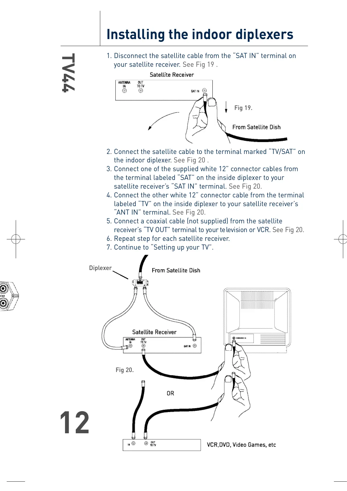 satellite receiver’s “SAT IN” terminal. See Fig 20.