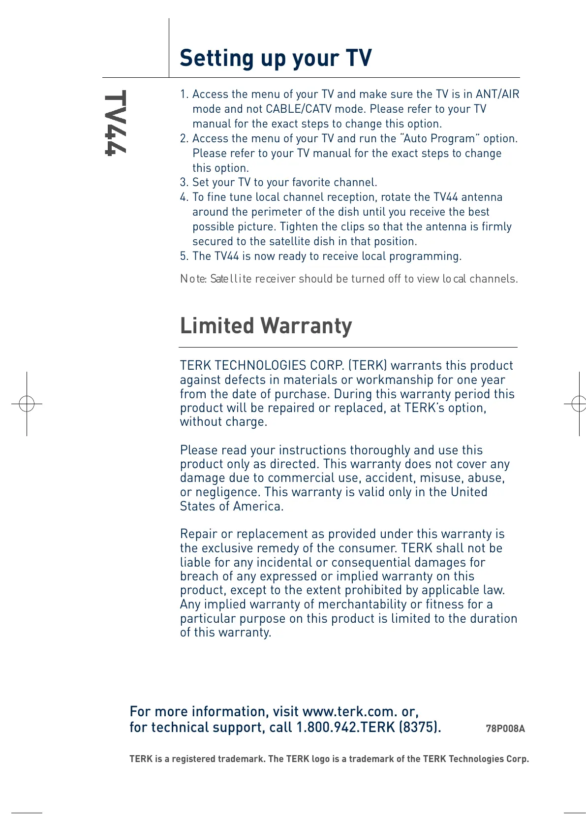 4. To fine tune local channel reception, rotate the TV44 antenna