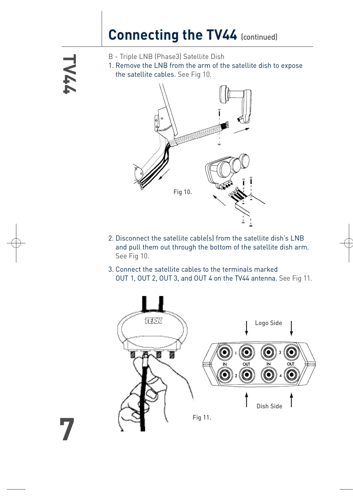 OUT 1, OUT 2, OUT 3, and OUT 4 on the TV44 antenna. See Fig 11.