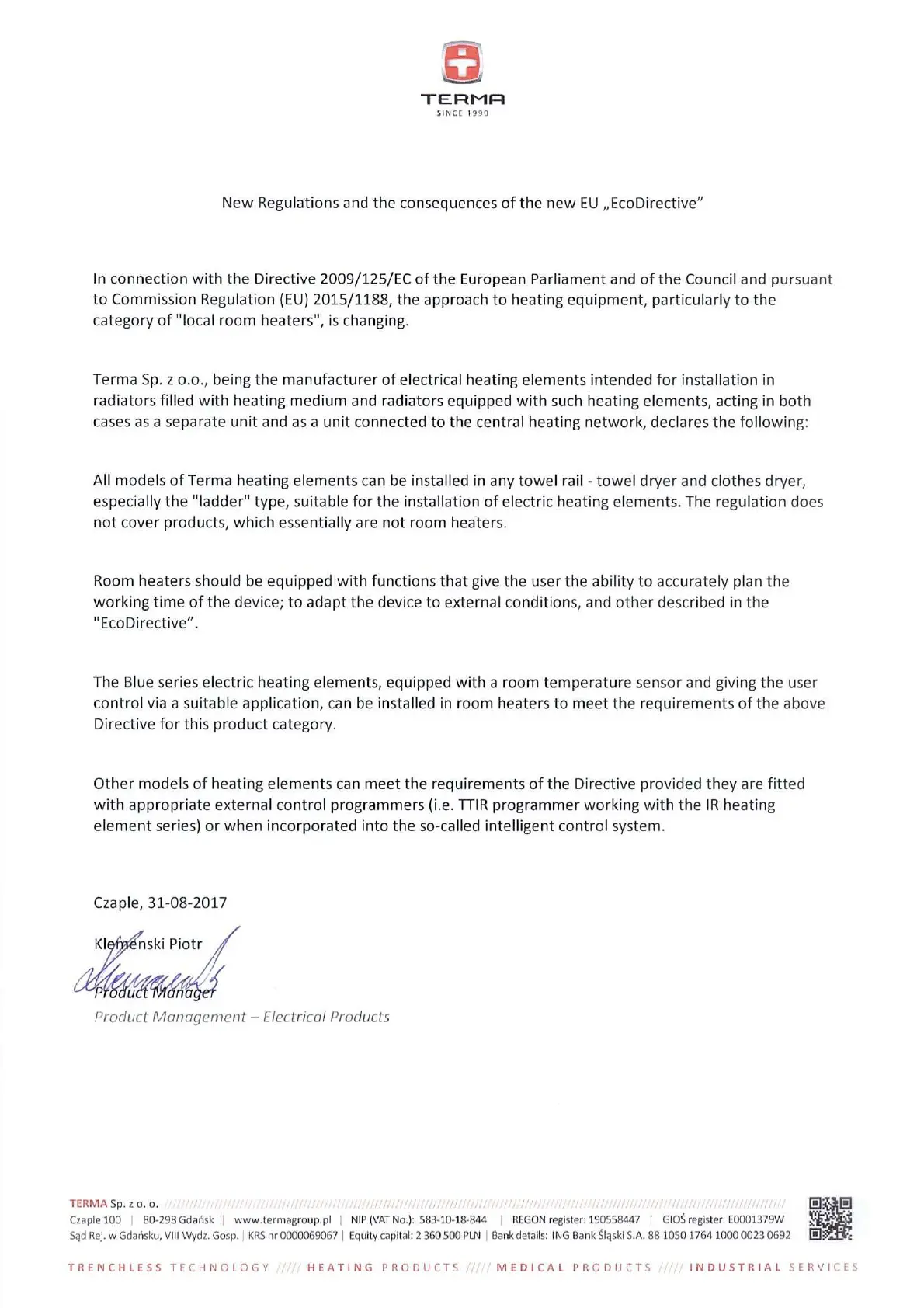 TERMA MOA - Regulatory Compliance; EcoDirective Impact