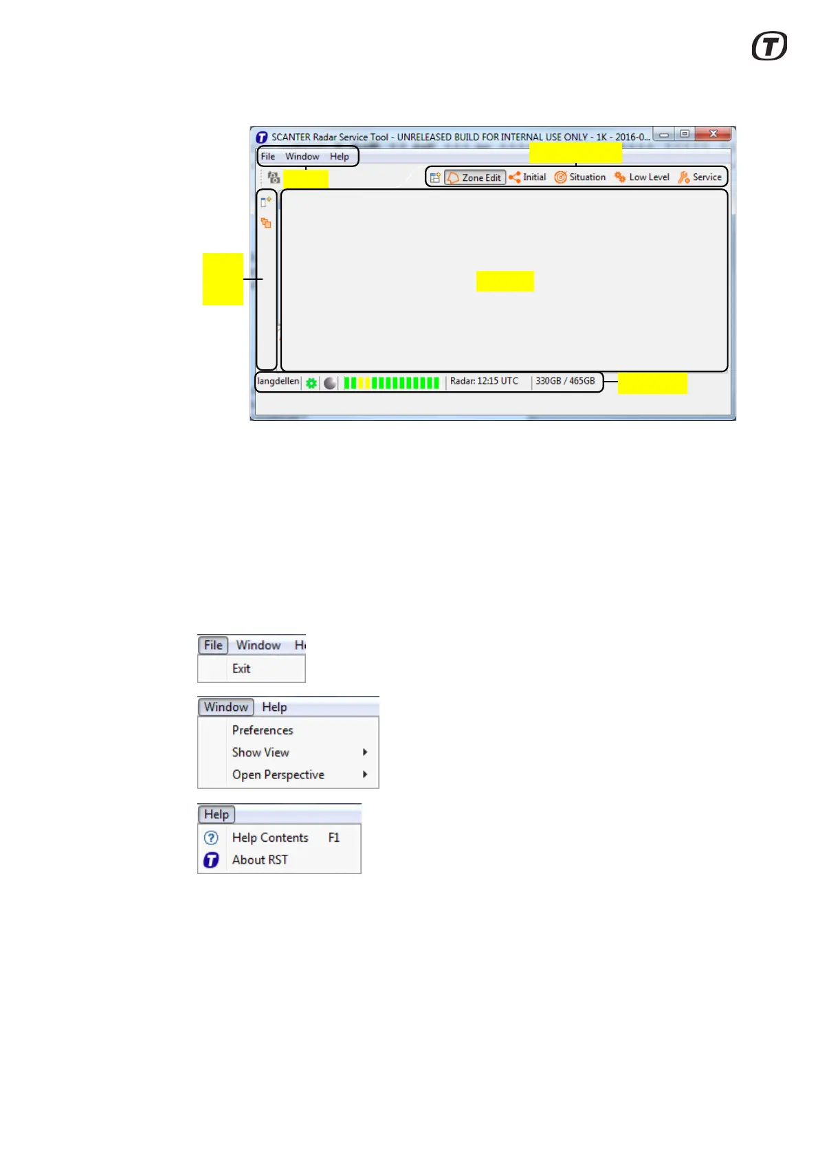 Fig. 5.2 Radar Service Tool - menus and submenus