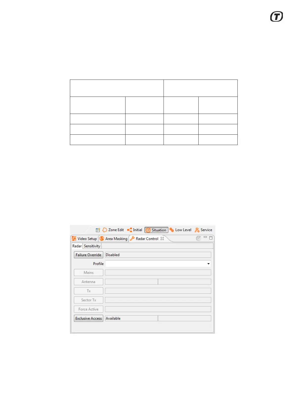"Radar Control" view - Radar tab (Fig. 5.12 (p. 35)) is used for switching on/off the